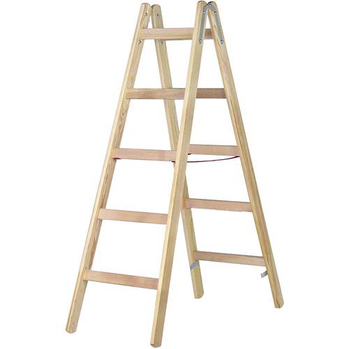 Anhand dieser Hellweg-Holzleiter ist uns gut vorstellbar, wie frühere Klappleitern funktionierten.