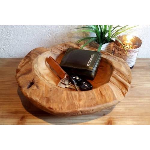 Holzschalen sind typischerweise rund oder oval. Eine flache runde Holzschale präsentiert Dekoration aber auch Obst besonders effektvoll. Zudem können Sie aus einer flachen Schale Dinge schnell und einfach entnehmen, egal ob eckig, rund oder oval.