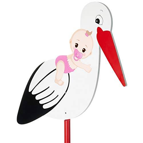 Damit das Material auch im Garten lange schön bleibt, sollten Sie ein wetterfestes Modell auswählen. Holzstörche mit Tuch oder Schleife eignen sich zudem sehr gut zur Verkündung des Geschlechts des Babys.