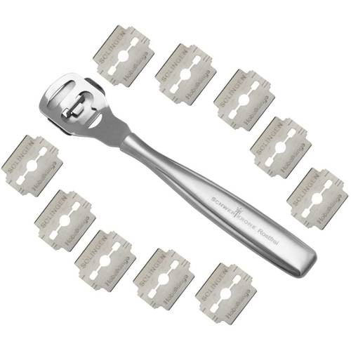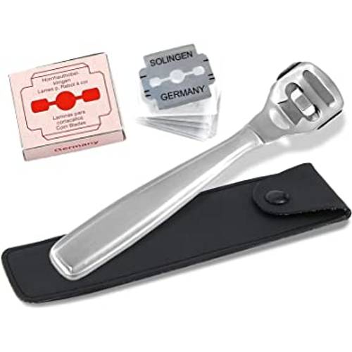 Den Hornhauthobel kaufen und nutzen Sie, um starke Hornhaut an Ihren Füßen zu entfernen. Auch ein Einsatz an den Händen ist damit möglich, aber eher selten. Das Gerät besteht aus einem Griff und dem Kopf. In diesem befindet sich auch die scharfe Klinge, die Sie regelmäßig wechseln sollten.