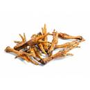 Getrocknete Hühnerfüße bestehen neben einigen kleinen Knochen hauptsächlich aus Haut, Bindegewebe und Knorpel. Dadurch sind sie leicht verdaulich. Hühnerfüße sind auch für Welpen geeignet.