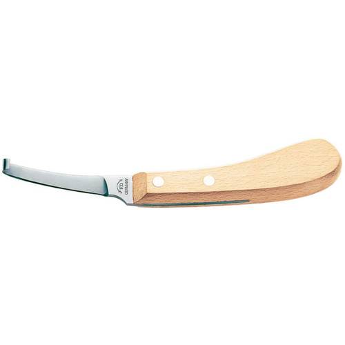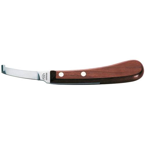 Zudem sollte man zu einer einseitig geschärften Klinge zurückgreifen. Der Grund: Beim Bearbeiten des Hufs mit einem Hufmesser benötigt man beide Hände. Ein beidseitig geschliffenes Messer kann jedoch nur mit einer Hand bedient werden.