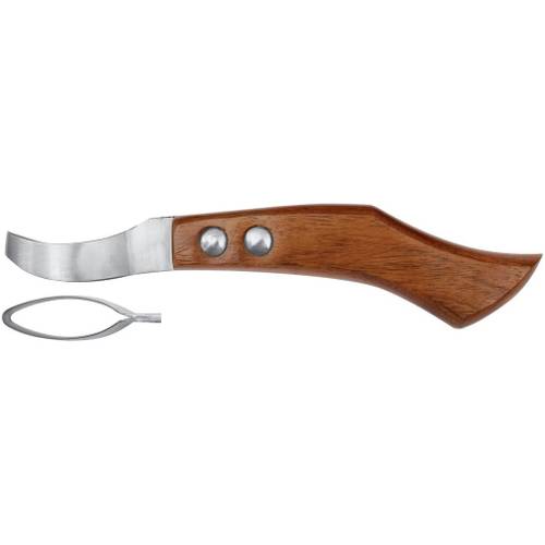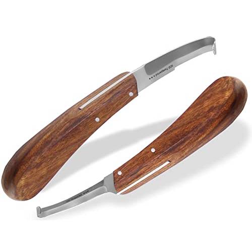 Wer die Hufe seines Pferdes regelmäßig selbst bearbeiten möchte, benötigt dazu zwei verschiedene Messer: das klassische Huf- oder Klauenmesser für Sohle und Hufrand sowie ein sogenanntes Schlaufenmesser für den Strahl.
