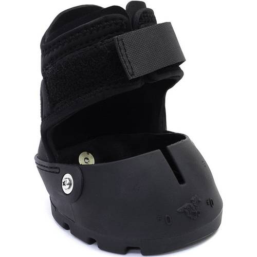 Ein medizinischer Hufschuh (ein sogenannter Behandlungsschuh für Pferdehufe) hingegen kann vor Infektionen schützen, Verbände sauber halten und sogar als Behältnis für Aufgüsse dienen. Für viele Pferde kann der Hufschuh auch längerfristig eine Alternative zum traditionellen Hufeisen bieten und bei der so genannten „Barhufumstellung“ helfen.
