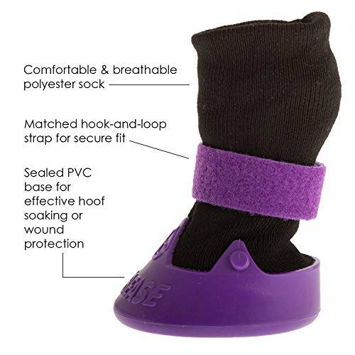 Ein medizinischer Hufschuh kann bei vielen Hufkrankheiten, wie Hufrehe, eine Hufverletzung, Strahlfäule und Weiteres, von Vorteil sein und die Therapie begleiten. Er sorgt dafür, dass der kranke Huf trocken und sauber bleibt, kann über Verbände gezogen oder sogar für Fußbäder verwendet werden.