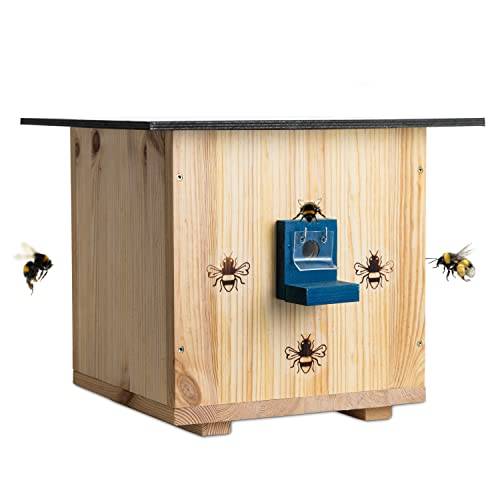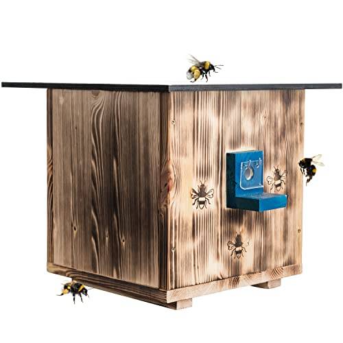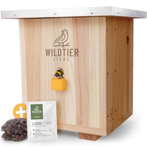 Bei dem Kauf eines Hummelhotels sollten Sie noch ein paar weitere Aspekte in Betracht ziehen. Um zu verhindern, dass Insektenschädlinge wie die Wachsmotte in die Hummelpension eindringen, empfiehlt sich ein Hummelhäuschen mit einer integrierten Wachsmottensperre oder einer Hummelklappe, die einem Balkon für ein Hummelhotel ähnelt. Hummelhaus-Vergleiche haben gezeigt, dass Wachsmotten diese Sperre beziehungsweise Klappe nicht durchdringen können, sodass das Hummelnest schädlingsfrei bleibt. Weiterhin sinnvoll sind vorgebohrte Luftlöcher, die für ein angenehmes Raumklima und eine gute Luftzirkulation im Hummelkasten sorgen. Mit feinem Netzmaterial verkleidete Luftlöcher sind umso praktischer, damit auch dort keine Schädlinge eindringen können. Zusätzlich sollten Sie noch die Größe und den Hummelhaus-Standort in Betracht ziehen: Suchen Sie ein Hummelhaus für den Balkon oder ein Bienenhaus für den Garten? Während sich kleinere Modelle optimal auf dem Balkon verwenden lassen, sind größere Hummelhäuser wunderbar für den Garten geeignet.