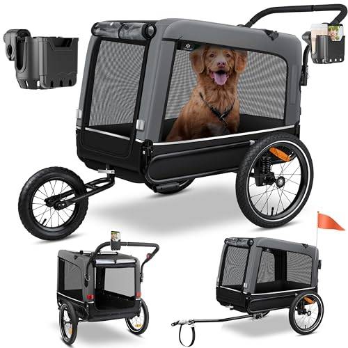Laut unseren Informationen ist dieser AniOne-Hundeanhänger mit bis zu 30 kg belastbar und ist 130 x 73 x 94 cm groß.