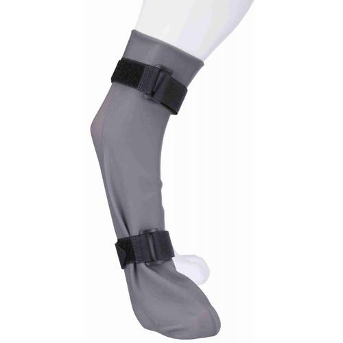 Hundesocken mit Klettverschluss oder Bandagen halten besonders gut, da sie genau auf den Umfang des Hundebeins angepasst werden.