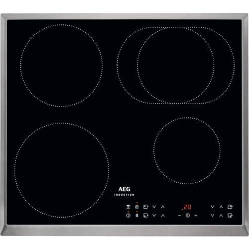 Dieses AEG-Induktionskochfeld „IKB6431AXB“ hat, wie unseres Erachtens üblich, vier Kochzonen, davon ist jedoch eine auch für Bräter (oval) geeignet.