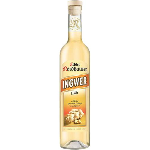 An dieser Stelle wird uns Echter-Nordhäuser-Ingwerlikör in einer 500-ml-Flasche gezeigt.