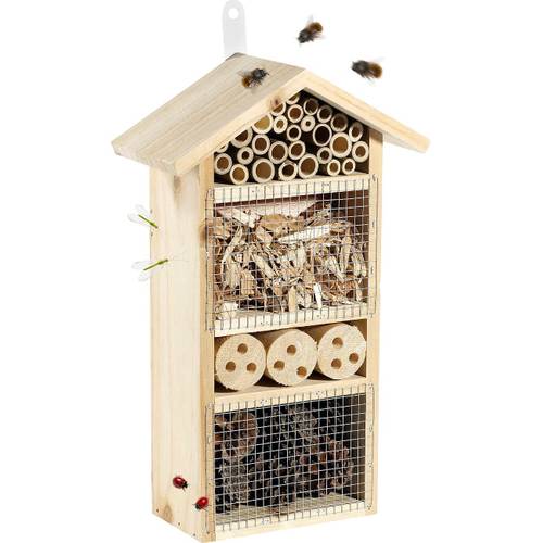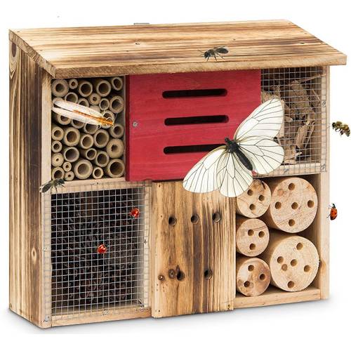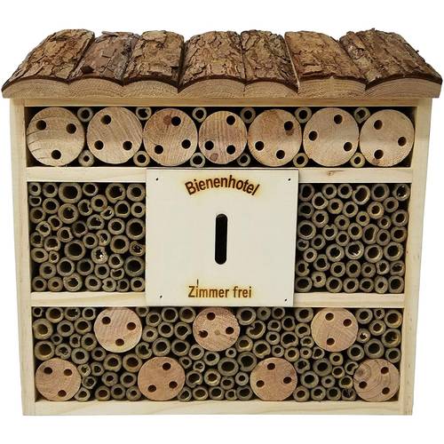Während ein Insektenkasten (unabhängig von seiner Größe wie ein Insektenhotel in XXL oder kleiner) meist zwischen vier und sechs unterschiedlich befüllte Zimmer aufweist und somit für viele verschiedene Nützlinge Unterschlupf bietet, gibt es natürlich auch spezielle Insektenhäuser für einzelne Arten, wie ein Wildbienenhotel oder auch ein Hummelhaus. Ein Insektenhotel der Kategorie Wildbienenhaus weist dementsprechend nur ein oder zwei Füllungen auf. Möchten Sie ein reines Bienenhotel kaufen, können Sie ebenfalls zwischen Fertighaus oder Bausatz wählen. Es gibt auch Angebote, bei denen Sie nicht nur 1 Stück, sondern gleich mehrere Hotels für verschiedene Insektenarten erhalten.