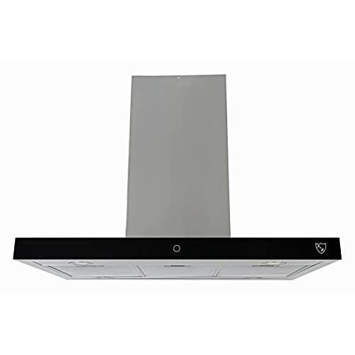 - Inselhaube 90 cm, Edelstahl, schwarzes Glas