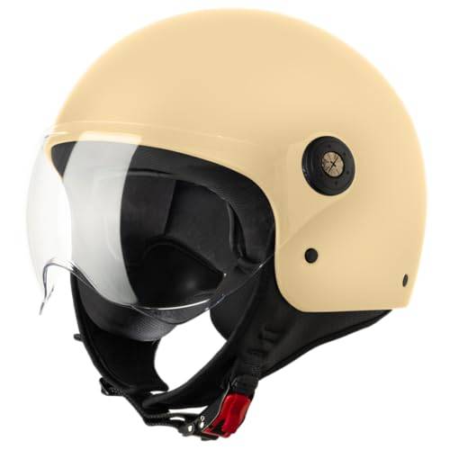 Gerade im Sommer, wenn viele Menschen mit ihren Rollern oder Scootern unterwegs sind, sieht man sie sehr häufig: die Jethelme im Retro-Look. Diese zeichnen sich durch eine offene Kinnpartie aus.