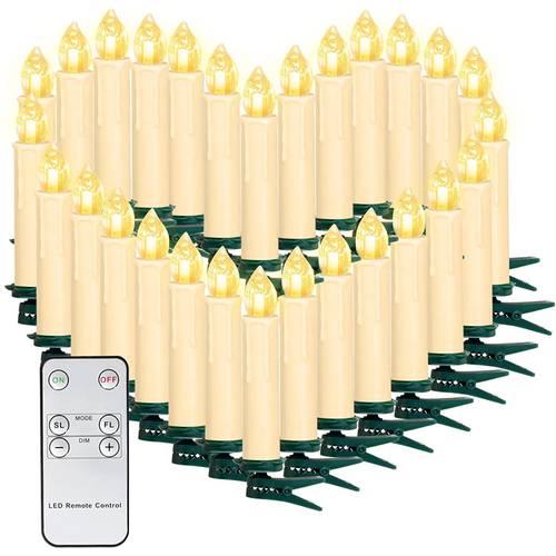 Christbaumkerzen kabellos | ähneln traditionellen Wachskerzen ohne die Feuergefahr vermeiden Kabelgewirr Abstand der Leuchten individuell regulierbar müssen einzeln mit Batterien bestückt werden |
