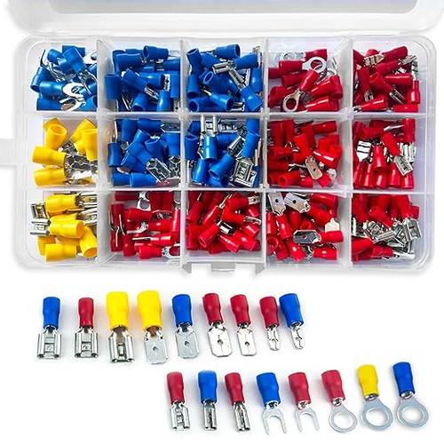 Dieses Set mit 280 Kabelschuhen enthält verschiedene Größen und Typen, sodass sich flexible Anschlussmöglichkeiten für unterschiedliche Kabelquerschnitte ergeben.