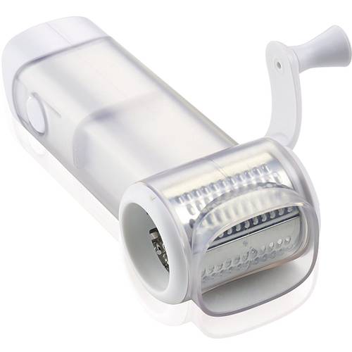 Trommelreibe![]() | Eine Trommelreibe zeichnet sich vor allem dadurch aus, dass sie eine rotierende Reibefläche besitzt. Diese ist an einem Zylinder angebracht, der durch eine manuelle Kurbelbewegung in Rotation gebracht wird. Durch ihre kompakte Größe sind die Trommelreiben meist mit einem sehr feinen Reibeblatt versehen und eignen sich nicht nur für Käse, sondern auch für Schokolade und andere Lebensmittel. Zudem besteht durch das einfache Handling keine Verletzungsgefahr. | |