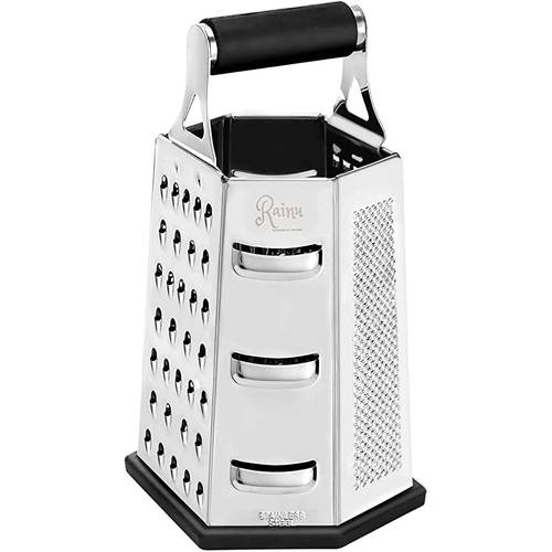 Klassische Käsereibe![]() | Die klassische Käsereibe ist zumeist relativ flach und besteht aus der Reibefläche und einem stielähnlichen Griff. Die Griffe haben oftmals eine praktische Öse, mit welcher man den kleinen Küchenhelfer an einem Haken befestigen kann. Je nach Modell kann die Feinheit variieren. Durch die flache Reibefläche findet die Käsereibe auch Platz in der kleinsten Schublade. | |