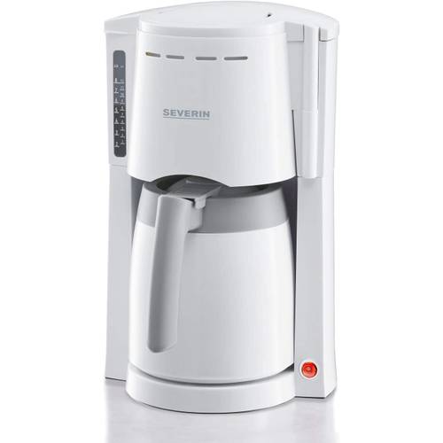 Einige Hersteller, zum Beispiel Severin, stellen sowohl weiße Kaffeemaschinen mit Thermoskanne als auch mit Glaskanne her. Kaffeemaschinen mit Thermoskanne halten den Kaffee sehr lange warm. Außerdem gehen sie nicht kaputt, wenn sie herunterfallen. Das macht sie zum Beispiel im Büro besonders praktisch.