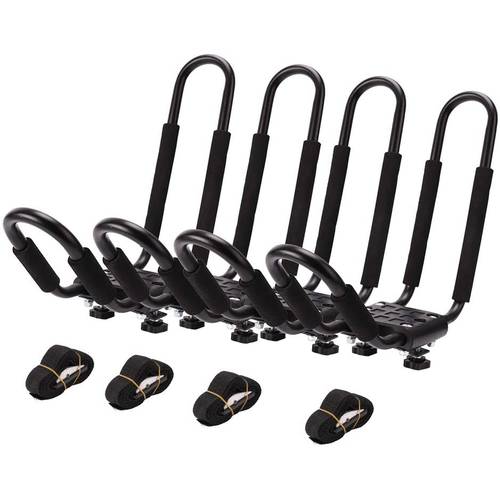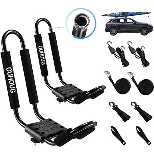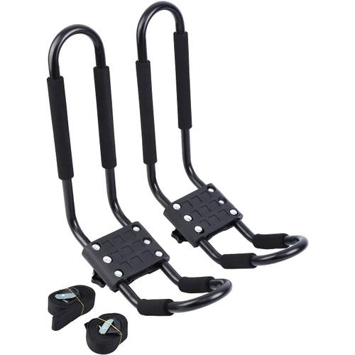 Diverse Kajak-Dachträger-Tests im Internet zeigen, dass J-Halterungen zu den beliebtesten und besten Kajak-Dachträgern gehören. Wie der Name bereits erahnen lässt, ist diese Art der Halterung wie ein J, also wie ein Haken, geformt. Zwei der Halterungen werden vorne und hinten an der Dachreling eines Autos angebracht. Das Kajak wird anschließend per Gurt eingespannt.