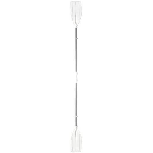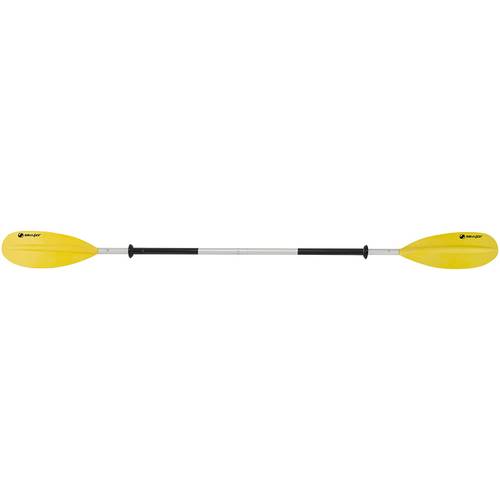 Auf diesem Bild sehen wir das originalverpackte Spinera-Kajak-Paddel „Classic Alu“, bei dem der Schaft aus Aluminium besteht und die Schlagblätter aus glasfaserverstärktem Polypropylen.