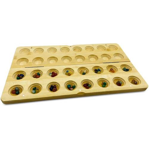 Moderne Kalaha-Steinchenspiele sind an ihre Spieler angepasst: Sie verwenden leichteres Holz für das Spielbrett und können zusammengeklappt und verschlossen werden.