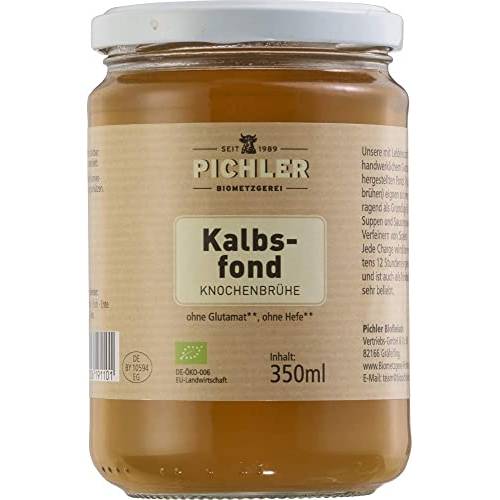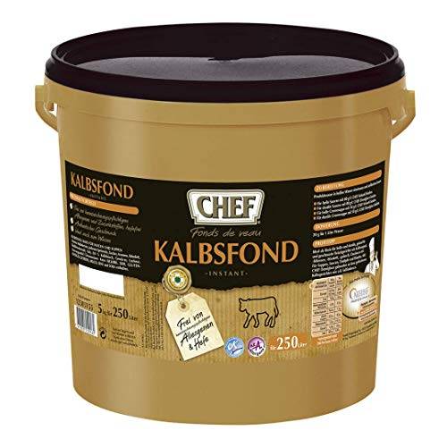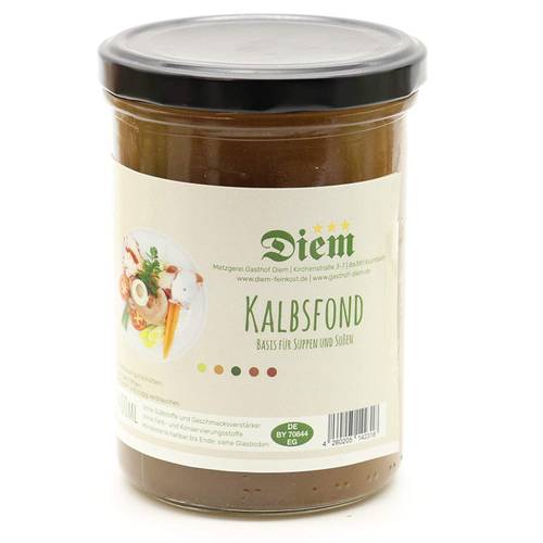 Bei Kalbsfond handelt es sich um eine Kalbsbrühe, die durch das Kochen von Kalbsknochen, Kalbfleisch und Gemüse entsteht. Die Verwendung von Kalbsfond gilt als sehr vielfältig, so können Sie nicht nur Ihre Bratensauce damit verfeinern, sondern auch kräftige Suppen gelingen damit auf jeden Fall. Die meisten Kalbsfonds werden aus ausgekochten Kalbsknochen oder auch dem Kalbfleisch hergestellt. Die Brühe wird durch verschiedene Gemüsesorten wie Zwiebeln, Lauch, Sellerie oder Karotten verfeinert. Sollten Sie unter Allergien leiden, achten Sie unbedingt darauf, einen Kalbsfond zu wählen, welcher keine Allergene wie Sellerie oder Senf enthält.