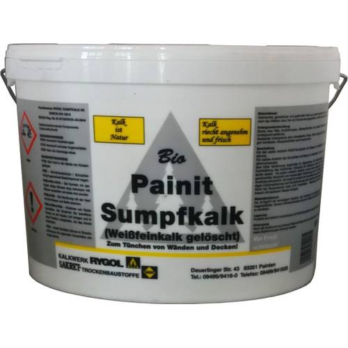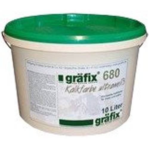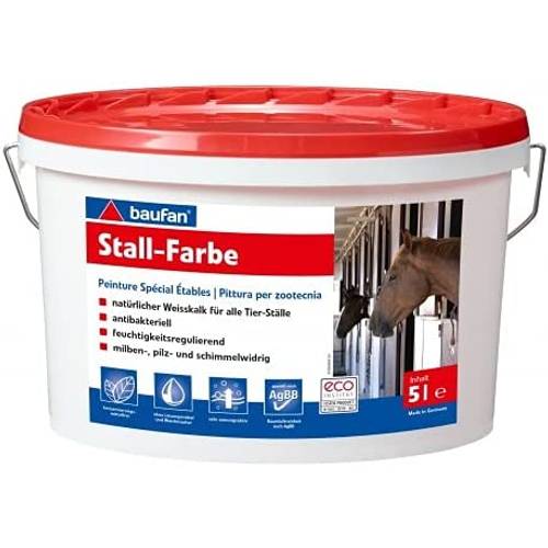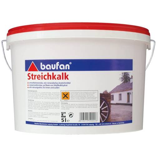 Auf disem Bild sehen wir eine Baufan-Kalkfarbe, die der Hersteller Streichkalk nennt und die es in 2,5 l, 5 l und 10 l Eimern gibt.