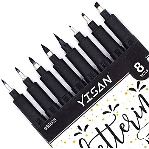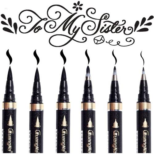 Von der Form her erinnern diese Kalligraphiestifte an Tintenroller. Die Besonderheit ist jedoch die flexible Spitze, mit der sich unterschiedlich dicke Striche ziehen lassen. Diese Stifte sind auch sehr gut für Kinder geeignet, weil sie schon mit Tinte gefüllt sind. Diese trocknet in der Regel schnell und deshalb verschmiert die Schrift nicht so leicht. Es gibt sogar japanische Kalligraphie-Sets mit deren feinen Stiften sich u. a. Mangas zeichnen lassen.
