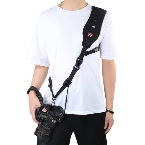 Der beste Kameragurt für mittlere und schwere Kameras ist ein Kameragurt mit Schnellverschluss, der sich leicht anlegen lässt und sicher hält. Die meisten dieser Gurte verfügen über Klammern, in denen sich ein Kugellager befindet. Mit ihrer Hilfe bleibt die Kamera flexibel und lässt sich leicht in verschiedene Richtungen bewegen. Kameragurte können an den Kameraösen an der Oberseite des Apparates festgezurrt werden. Manche Modelle können an das Stativgewinde angeschlossen werden. Dies hat den Vorteil, dass der Gurt beim Hochkant-Fotografieren nicht behindert. Vor der Verwendung eines Stativs muss der Gurt entfernt werden.