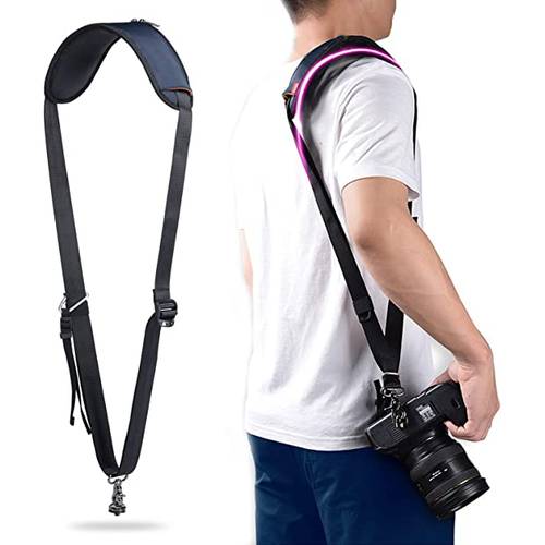 Möchten Sie einen günstigen Kameragurt kaufen, bieten sich Produkte aus Polyester oder Nylon mit Kunststoff-Spangen an. Diese sind etwas weniger langlebig als zum Beispiel ein Kamergurt aus Leder in Schwarz oder anderen Farbvarianten, jedoch für den gelegentlichen Gebrauch bei Freizeitaktivitäten ausreichend. Atmungsaktive Mesh-Einsätze verhindern, dass Sie zu sehr schwitzen und geben ein angenehmes Tragegefühl. Ist ein Kameragurt gepolstert, federt er Stöße ab und macht das Tragen schwerer Kameras und Objektive angenehmer. Allerdings verzichten viele Fotografen auf Schulterpolster und Co., da sie die Kamera weit vom Körper abstehen lassen. Ein Leder-Kameragurt ist besonders langlebig und schmiegt sich fest an den Oberkörper an. Metallösen und -klammern sind extra-sicher und verhindern, dass Kamera und Objektiv sich lösen.
