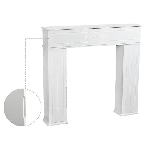 Ein Kaminumbau sollte groß genug sein, sodass er nicht im Raum untergeht. Einige Kaminkonsolen sind dekoriert und dadurch auffallender. Der Vorteil von undekorierten Kaminkonsolen und Kaminumrandungen in Weiß ist, dass diese schlicht wirken und sich somit einfacher in Ihr Wohnzimmer integrieren lassen.