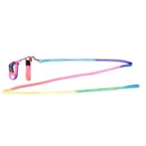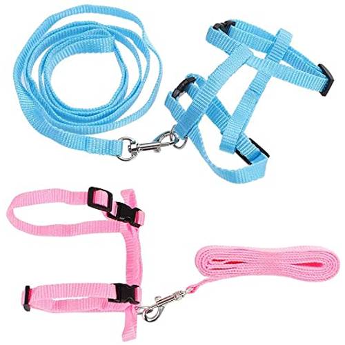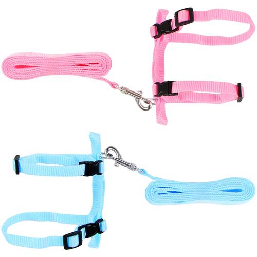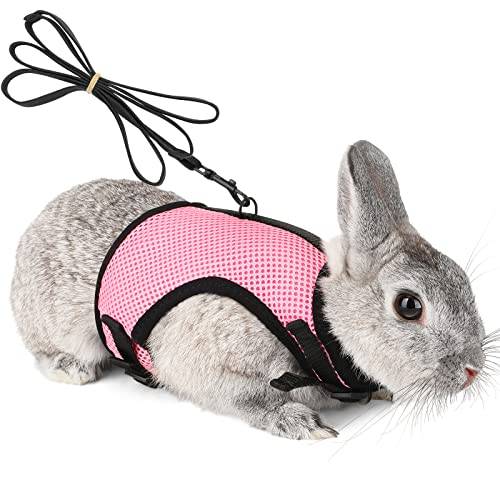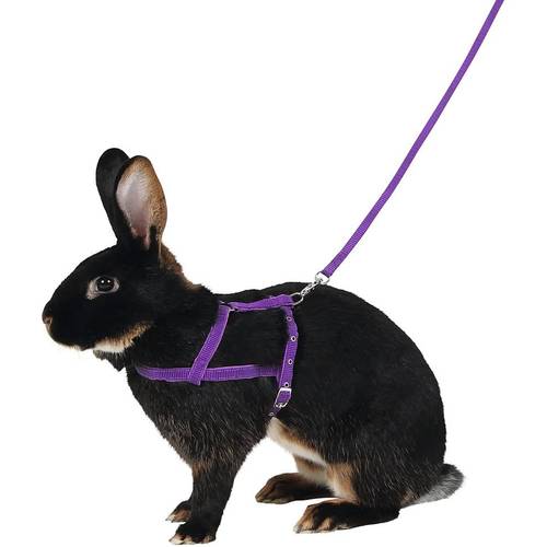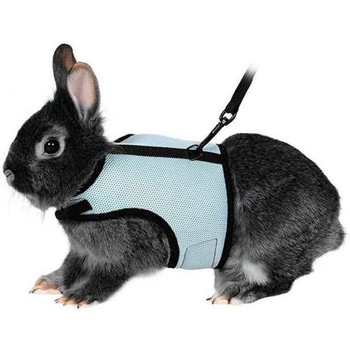 In den meisten Fällen gibt es für das Kaninchen Geschirr und Leine in einem. Für Parkourläufe sollte die Leine ca. 2 Meter lang sein, damit sich das Tier immer noch ausreichend über die Hindernisse bewegen, aber nicht weglaufen kann. Beim Spazieren bzw. Laufen sollte die Leine etwas durchhängen, da sie nur zum leichten Führen da ist. Auf keinen Fall sollte an ihr gezogen oder das Tier an ihr hochgehoben werden. Generell gilt zu beachten, dass Kaninchen Fluchttiere sind, die sich leicht erschrecken und im schlimmsten Fall in die Leine rennen könnten. In einem abgesperrten Bereich ist es deshalb manchmal besser, die Leine loszulassen, sollte das Kaninchen davonlaufen wollen. Einige Modelle bieten einen Ruckdämpfer an der Leine, welcher abrupte Bewegungen an der Leine zwischen Kaninchen und Halter abfedert.