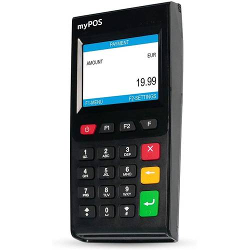 Das Kartenterminal von myPOS Combo ist neben Schwarz noch in der Farbe Blau erhältlich.
