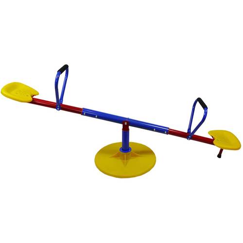 Wie bei einer klassischen Wippe kommt auch bei einer Karussellwippe erst mit einem zweiten Kind Spaß auf. Die Drehfunktion ändert nichts daran, dass ein weiteres Kind auf dem zweiten Sitz als „Gegengewicht“ notwendig ist.