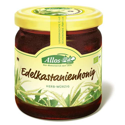 Platz 4 | Allos Edelkastanienhonig | ca. 18 € | sehr gut | herb, würzig | ![]() ![]() | |