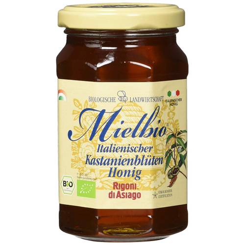 Platz 2 | Rigoni di Asiago Mielbio Kastanienblütenhonig | ca. 6 € | sehr gut | leicht, bitter | ![]() ![]() | |