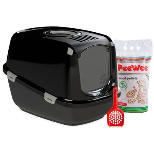 Viele Katzenbesitzer bevorzugen die geschlossene Version mit Schwingtür, da unangenehme Gerüche kaum nach außen dringen und die Katzenstreu nicht herausgescharrt werden kann. Ein mit Aktivkohle imprägnierter Schaumstofffilter, der meistens im Dach eingebaut ist, fängt Kot- und Uringeruch auf, sodass die Luft sowohl innen als auch außen frisch bleibt.