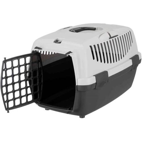 Durch die breite, herausnehmbare Fronttür lässt sich die Beeztees-Katzentransportbox „Bribon Gibsy“ stressfrei beladen.