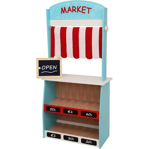 Für das Spiel mit einem Kaufladen gibt es unzählige Varianten. So können Sie den Laden in einen Marktstand verwandeln und Ihr Kind kann Obst und Gemüse verkaufen wie auf einem richtigen Wochenmarkt.