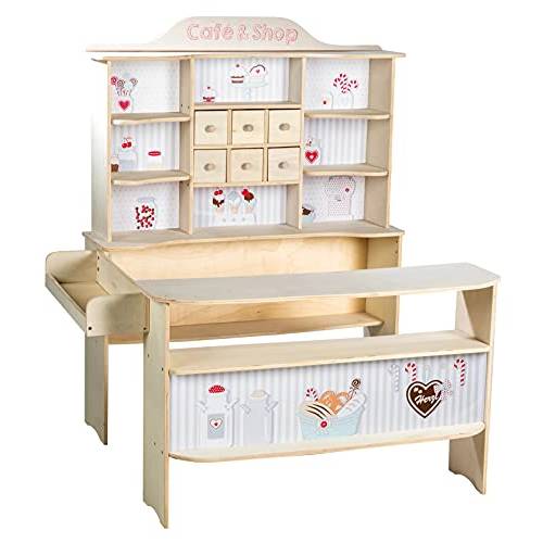 Wir empfehlen Ihnen einen Kaufladen sowie Zubehör aus Holz anzuschaffen. So wie Sie Ihre Situation beschrieben haben, werden viele Kinder mit dem Kaufladen spielen und Holz ist hierfür die stabilste Lösung. Darüber hinaus ist Kaufladen-Zubehör aus Holz recht wuchtig, was die Gefahr verringert, dass einer Ihrer kleinen Schützlinge ein Kleinteil verschlucken könnte.