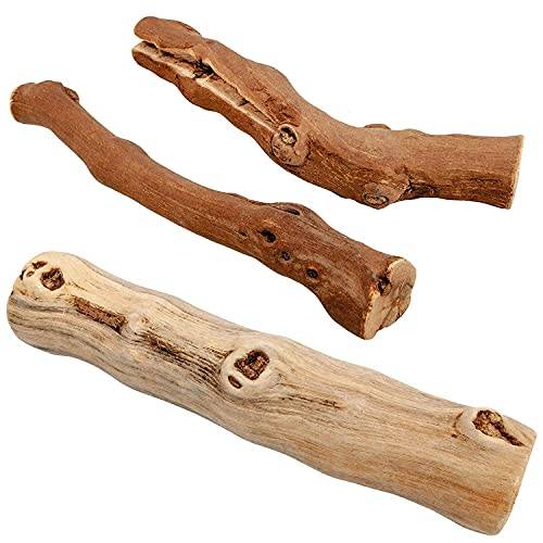 Die meisten Kauhölzer sind aus Kaffeeholz oder Olivenholz. Bei beiden Holzarten handelt es sich um sehr robuste Materialien, die in ihrem naturbelassenen Zustand als Hunde-Kaustab geeignet sind und nicht splittern.