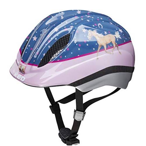 Dieser KED-Fahrradhelm „Meggy-ll-Trend Stars pink aqua“ bietet unseres Wissens eine gute Größenanspassung und ein integriertes LED-Rücklicht.