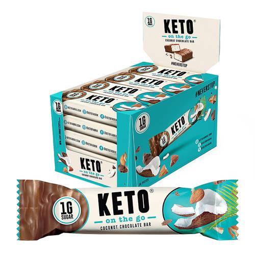 Platz 1 | Keto On The Go Coconut-Chocolate Bar | ca. 33 € | Schokolade-Kokos | 477 kcal | ![]() ![]() | |