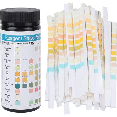 In einer Packung sind 50 Urinteststreifen enthalten, die zur Analyse des Harns auf das Vorhandensein von Ketonen verwendet werden können. Andere Produkte in dieser Kategorie verfügen jedoch bis zu 100 Teststreifen.