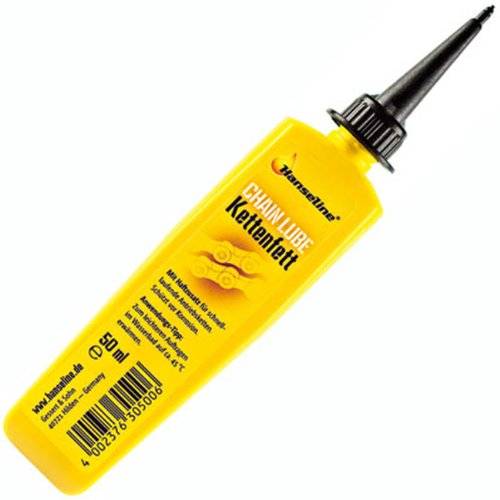 “Die Fachbezeichnung ‚Kettenfett‘ steht für dickflüssiges, hochviskoses Öl, welches als Spray (Atlantic-Kettenspray) oder in Flaschen (Oil of Rohloff) gehandelt wird. Es ist kein Fett im umgangssprachlichen Sinn. Dieses Kettenfett bzw. Öl gibt es auch von verschiedenen anderen Herstellern, auch in Tubenform.”