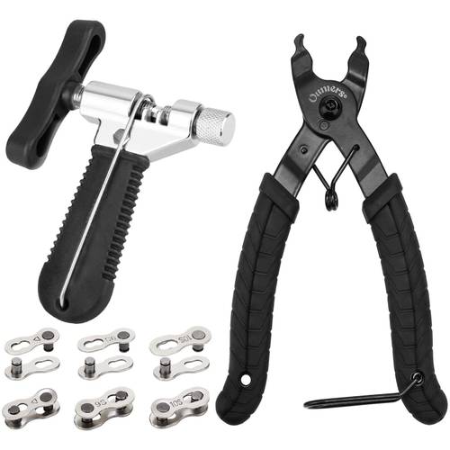 Darüber hinaus kann es jedoch auch hilfreich sein, ein Nietwerkzeug oder einen Kettenprüfer zur Verfügung zu haben. Gemeinsam mit austauschbaren Kettenverschlussgliedern bieten Sets mit Kettenschlosszange ein Rundum-Paket für die Reparatur Ihrer Fahrradkette.