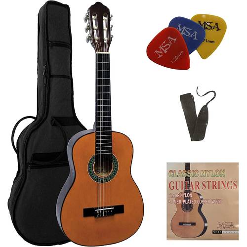 Gitarren für Kinder erhalten Sie als einzelne Gitarre mit Zubehör oder als Kindergitarren-Set. Welches Zubehör diesem Starter-Set beiliegt, ist vom Hersteller abhängig. Hierbei bieten einige zusätzlich zur Kindergitarre (classic) Plektren, eine Gitarrentasche oder ein Stimmgerät an. Wollen Sie beim Kauf der ersten Gitarre für Ihr Kind das Geld für das separate Zubehör sparen, raten wir Ihnen daher, nach einem Gitarren-Angebot zu schauen, bei dem weiteres Zubehör beiliegt.