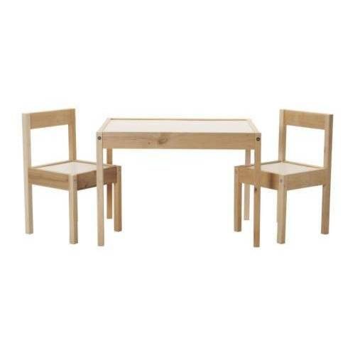 Der Kindertisch von IKEA besteht aus einem hellen Holz und beschichteten aufklappbaren Tischplatten, welche sich besonders gut abwischen lassen.