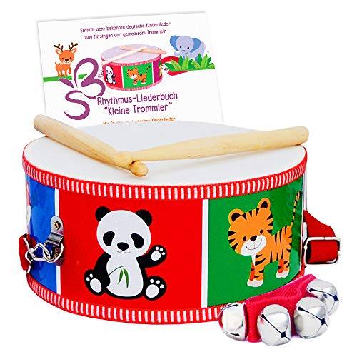 Zuerst einmal verfügt nicht jede Kindertrommel über einen Tragriemen. Wünscht sich Ihr Kind eine Kindertrommel zum Umhängen, achten Sie deshalb darauf, dass Sie eine entsprechende Kindertrommel mit Band kaufen.