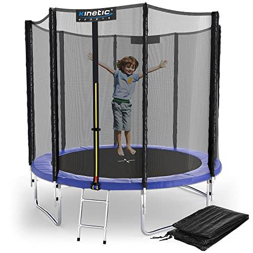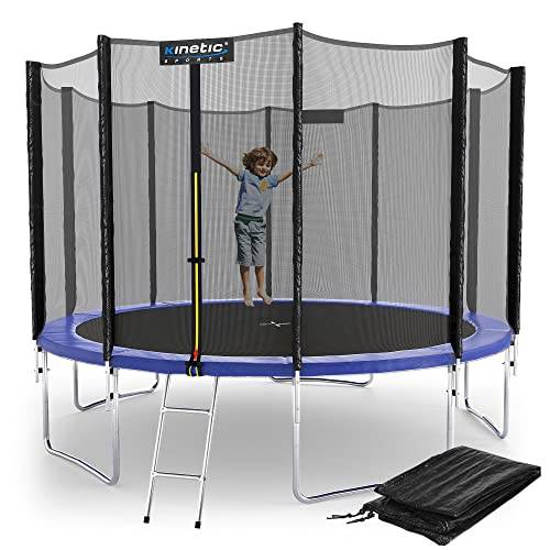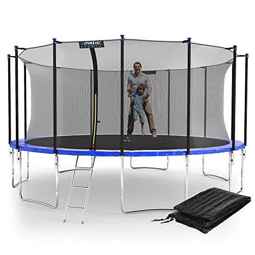 Die größten von Kinetic angebotenen Trampoline messen knapp 490 cm im Durchmesser und bieten damit eine besonders große Sprungfläche, wie beispielsweise das Kinetic-Sports-Outdoor-Gartentrampolin oder alternativ auch das Ultimate Pro, welches Sie bis zu einer Größe von 427 cm erhalten.